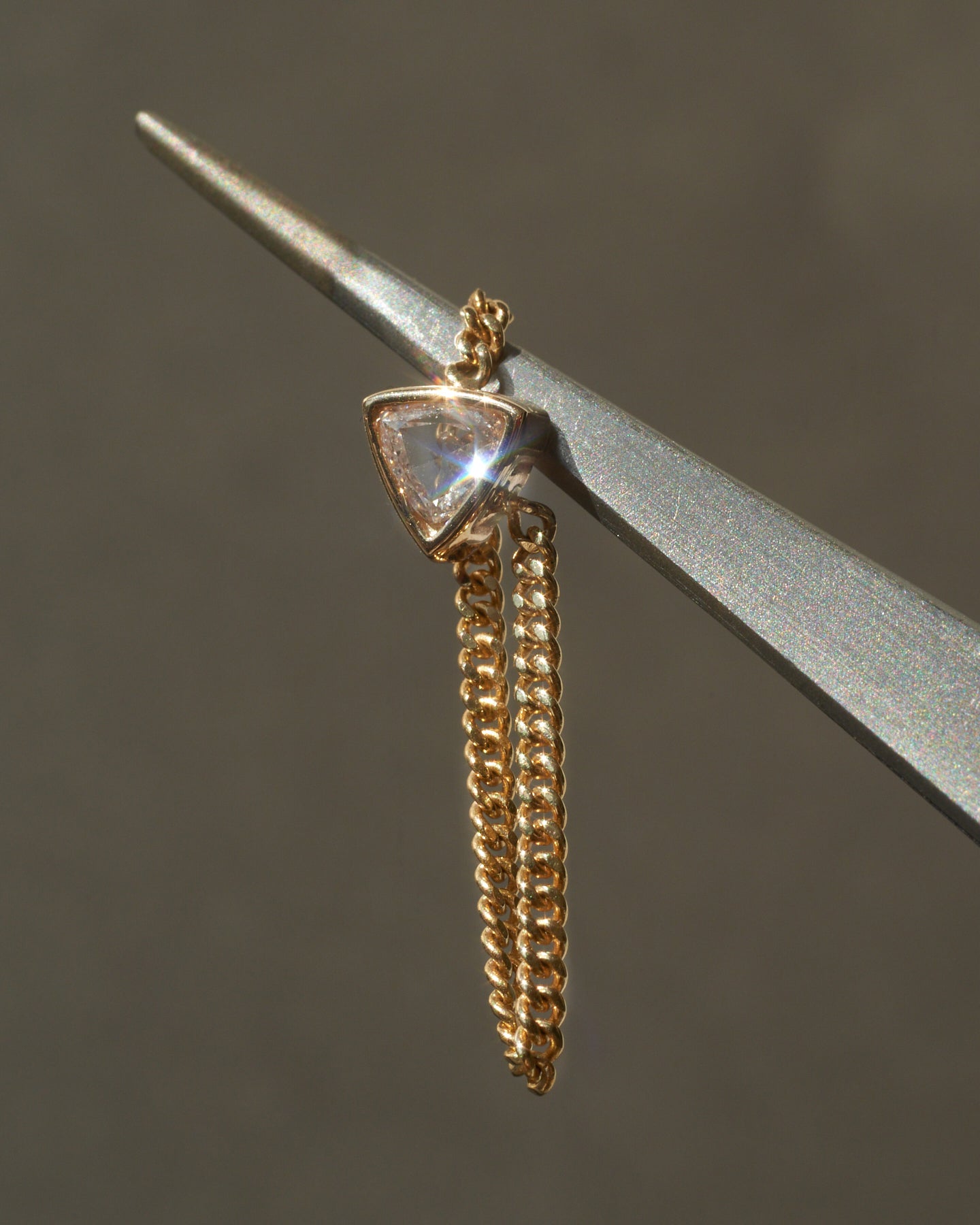 This very special 5mm round brilliant-cut G-color diamond weighs .7 carats, and is hand-set in a 14k yellow-gold bezel setting on a 2.4mm 14k yellow-gold cuban link.