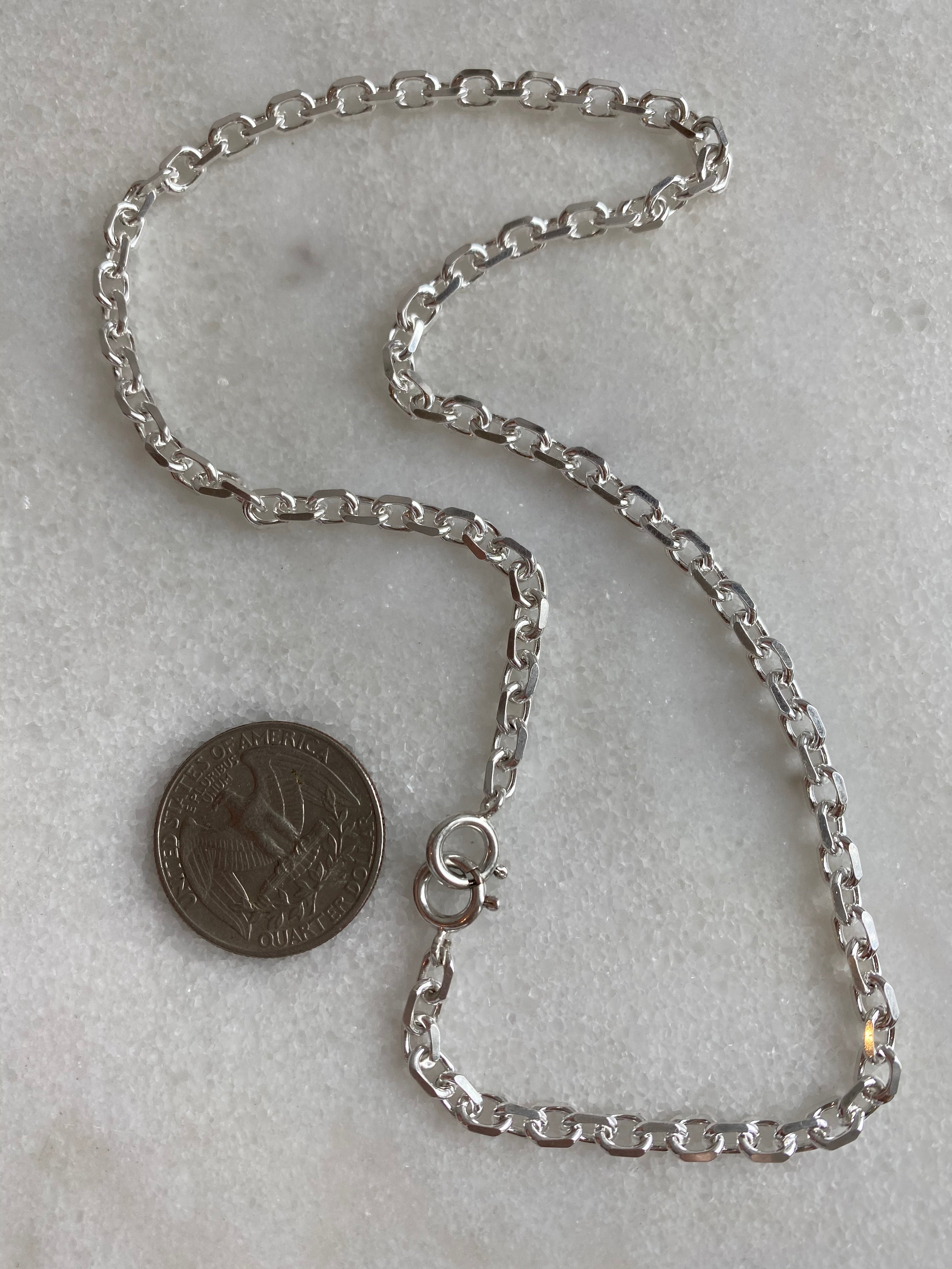 Elongated Diamond Cut Cable Chain 4.2mm Sterling Silver Necklace