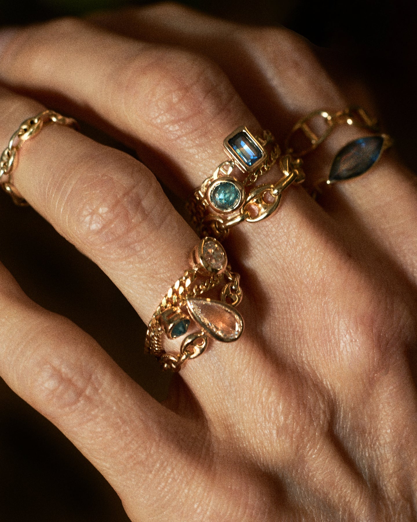 This exquisite ring showcases a .65 carat belgium-cut diamond. Measuring at 10.5mm x 5.5mm, this pear-shape diamond is hand-set in our 14k yellow-gold bezel setting. Displayed on our signature 2.6mm 14k yellow-gold puffy mariner link.