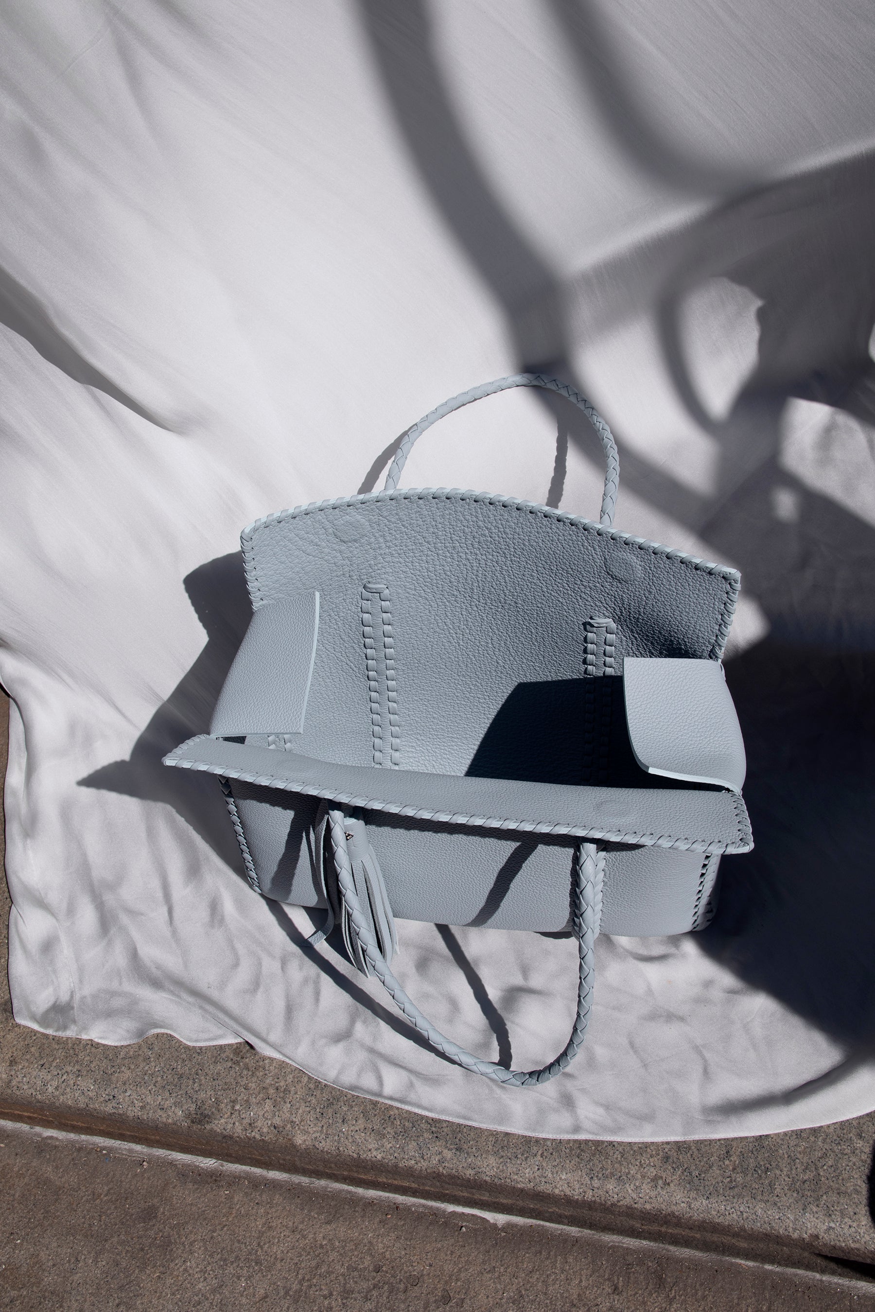 Hand-braided straps with a 9" drop that you can fit over your shoulder.